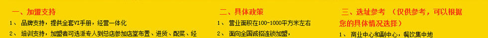 開設(shè)分店 免費(fèi)再開設(shè)分店(即第2個(gè)、第3個(gè)店),經(jīng)公司確認(rèn)后,原簽定合同的代表人,需到公司辦理相關(guān)的分店免加盟費(fèi)手續(xù)。