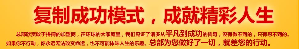 ★開店靈活·投資夠小·經(jīng)營輕松:投資正重慶,市場大,收益高,投資少,見效快。20平米的小店即可輕松經(jīng)營,完全整店輸出模式,從選址開 店、店面設計、店內(nèi)宣傳品、經(jīng)營服務,不斷的新產(chǎn)品研發(fā),一條龍的服務,讓您輕松掙錢當老板,而且有使您意想不到的高額利潤回報,讓您一次投資,終生受 益。